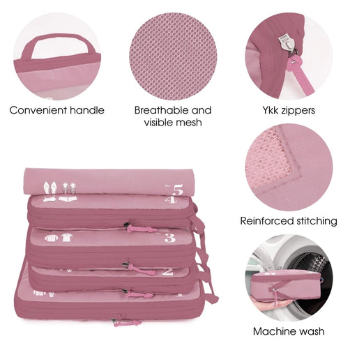 View full details5-Set Compression Packing Cubes — Travel Organizer Bags for Suitcases