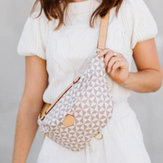 Looking for an effortlessly chic belt bag? Your search stops here. The Adele's luxe patterns and high-quality vegan leather make it the perfect choice for the stylish gal on the go. The zippered back pocket easily stows small essentials like your keys, lip gloss, and credit cards, and the interior pocket is ideal for items you want to keep extra secure. The Adele's belt strap is adjustable for a personalized fit. Details: 7.75” long x 9” wide on bottom/13.5” on top x 3” deep Strap adjusts up to 36" long