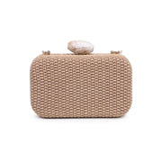 Elevate your evening ensemble with this Woven Straw Evening Bag! The marbled top clasp and gold hardware add a touch of opulence, making it a conversation starter. Unveil its practical side with a fabric-lined interior, ensuring your night-out essentials stay in place.