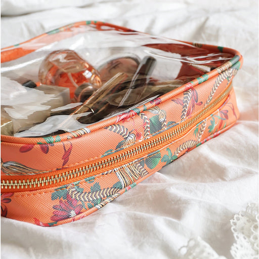 View full detailsClear Beauty Case | Golden Tassel - Solar Orange - Great for Travelers!