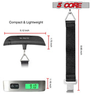 Perfect for Travelers: This luggage scale is lightweight and small, so you can bring it everywhere without making your bags too heavy. Very Easy to Use: Using this luggage scale is really simple. Just push a button to switch between weight or temperature units, and press tare/ zero to reset the luggage scale. Max 110-lbs Capacity: 5 Core luggage scale weigh bags up to 110 pounds or 50 kgs. The big digital backlight screen makes it easy to see the weight even in the dark. Battery Operated with Overload Warnings: The digital luggage scale has a built-in battery that will tell you when itβs running low.